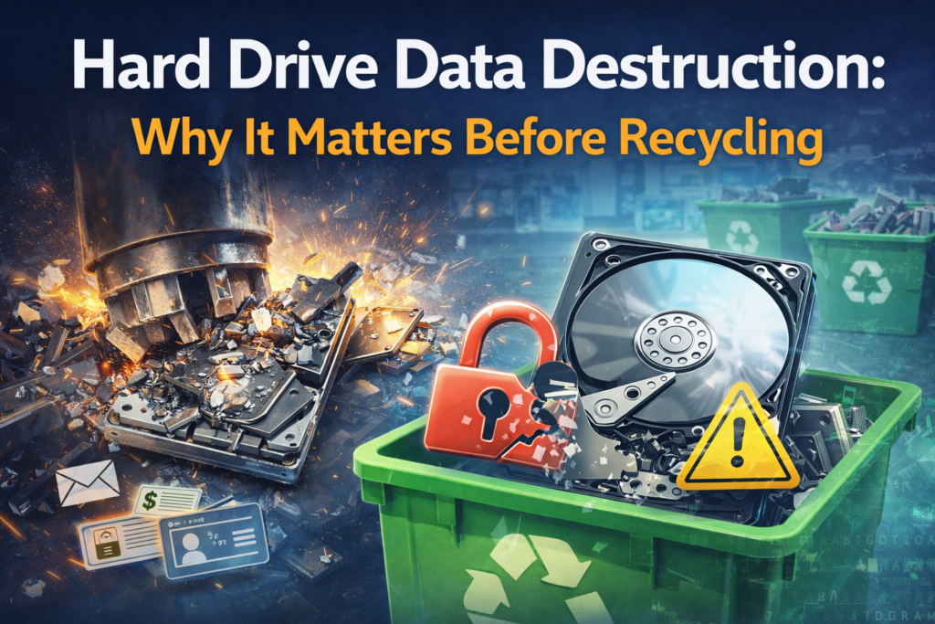 This guide explains why hard drive data destruction matters, what happens when data is not properly destroyed, and how Dallas residents and businesses can protect themselves before recycling electronics.